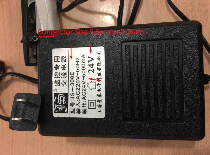 Nguồn điện cấp cho thiết bị: AC Connector Size 5.5mm x 2.1mm