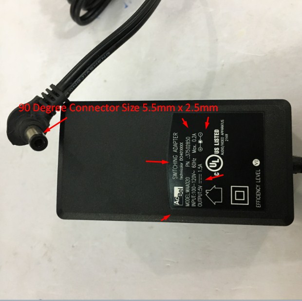 Adapter AC to DC 5V 1.5A 7.5W ACBEL WAA020 Switching Power Supply 90 Degree Connector Size 5.5mm x 2.5mm
