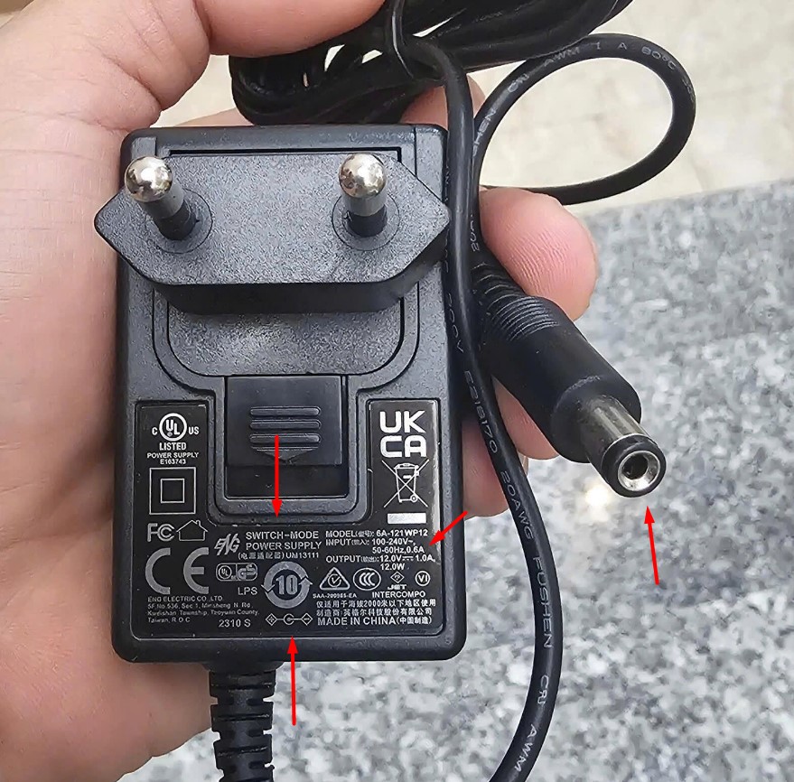 Nguồn điện cấp cho thiết bị: DC Connector Size 5.5mm x 2.1mm