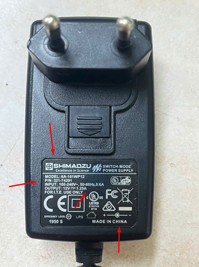 SHIMADZU 12V 1.5A 18W 6A-181WP121 P/N: 321-74441 + ---C--- - Connector Size 5.5mm x 2.5mm