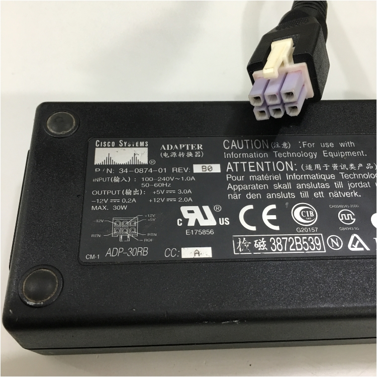 Adapter Cisco 34-0874-01 12V 2A 5V 3A Connector Size 6 Pin ATX Molex