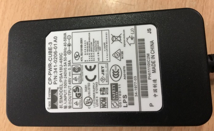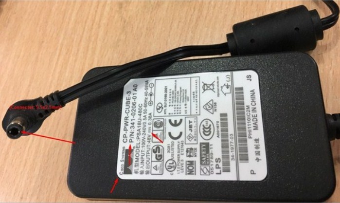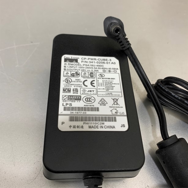 Chuyển nguồn chính hãng chất lượng cao Adapter Cisco 341-0206-01 48V 0.38A CP-PWR-CUBE-3 For Cisco CAP2702I AIR-CAP2702I AIR-CAP2702I-E-K9 AIR-CAP2702I-A-K9 AP 2702i 2700 Series Wireless Access Point (Connector: 5.5x2.5mm)