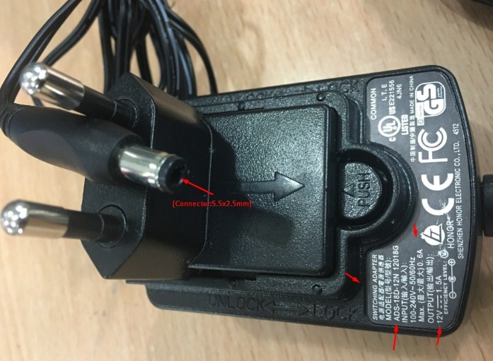 Adapter Điện thoại IP Video Call Grandstream GXV3275 12V 1.5A ADS-18D-12N For Polycom Conference Phone(Connector: 5.5x2.5mm)