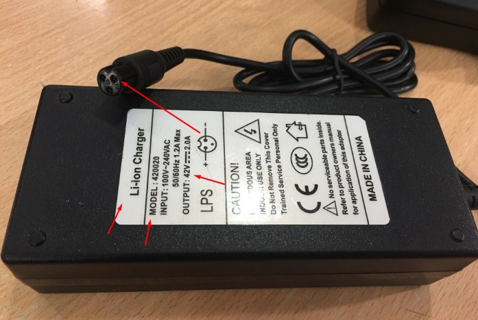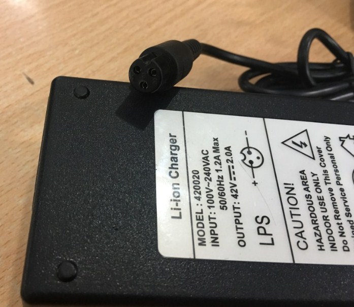 Adapter li-ion charger 420020 42V 2A For Xe điện cân bằng 2 bánh Scooter Connector Size 3-Prong Inline