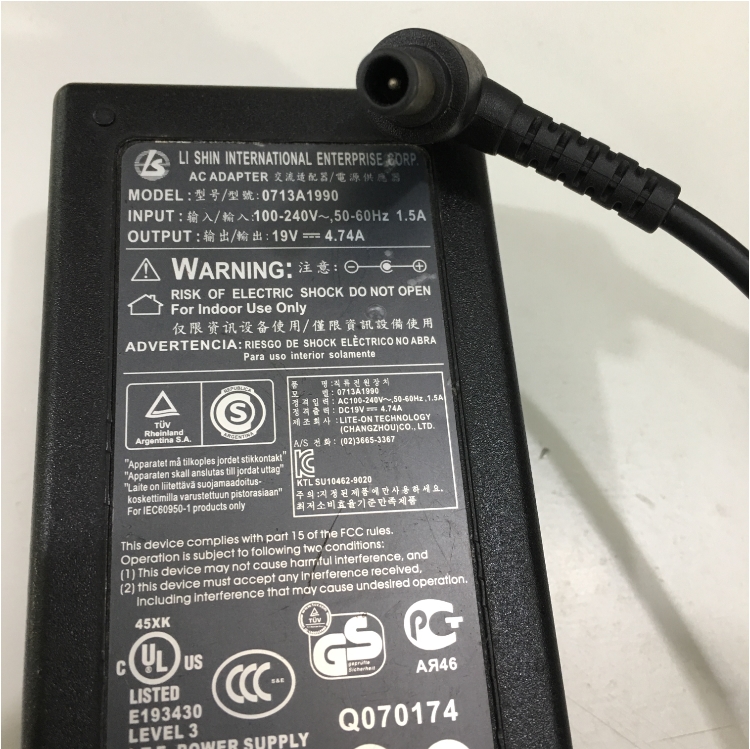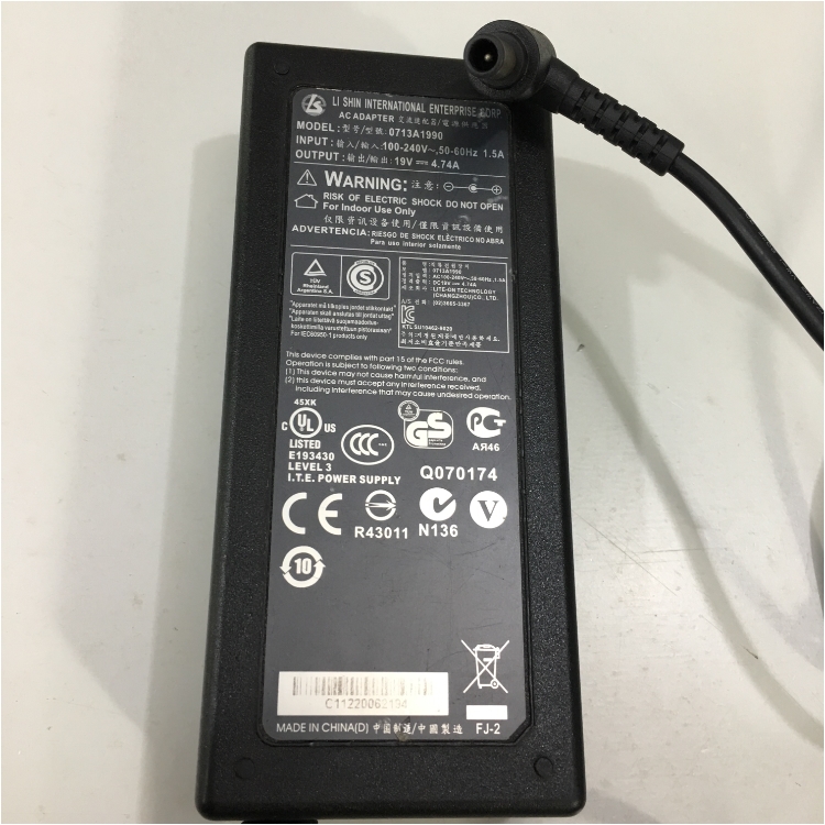 Adapter LI SHIN 19V 4.74A 0713A1990 Connector Size 6.5mm x 4.4mm