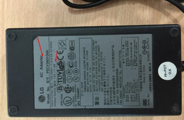 Adapter Monitors Original LG PSCV360104A 12V 3A 36W Connector Size 6.5mm x 4.4mm