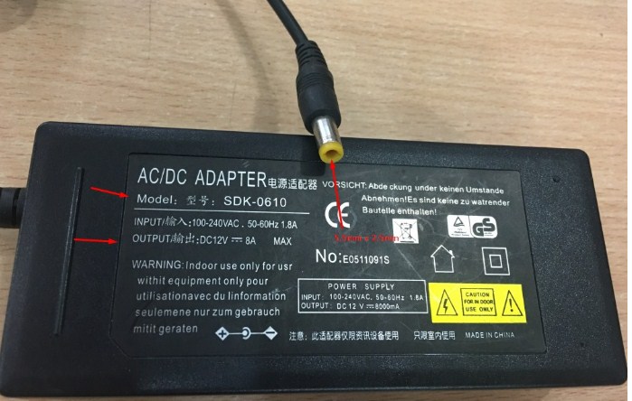 Nguồn điện cấp cho thiết bị: DC Connector Size 5.5mm x2. 5mm