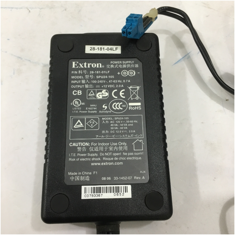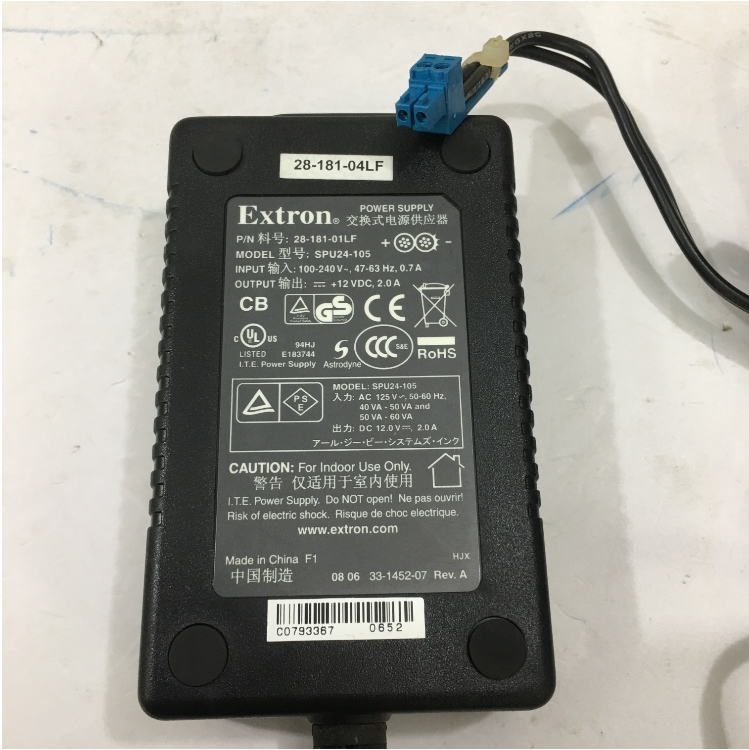 Loại sản phẩm: Adapter Original 12V 2A 24W 28-181-01LF SPU24-105 For Extron DTP Electronics Connector Plug Size 2Pin