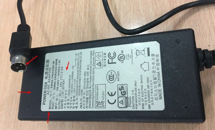 Adapter Original 24V 2.5A 60W POWER-TEK SW60-24002500-W Connector Size 3Pin 10mm Mini Din
