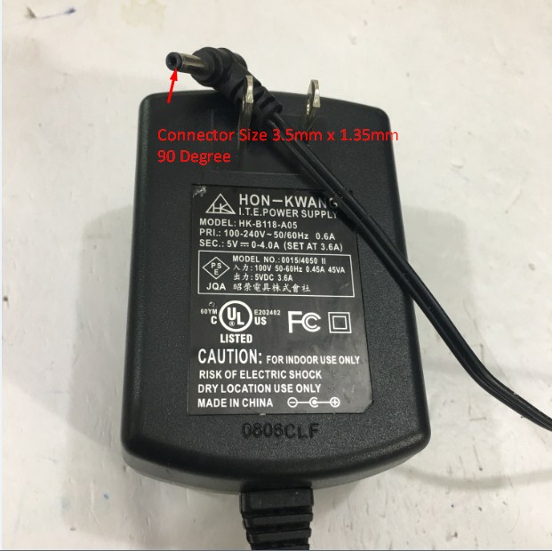 Adapter Original 5V 4A 20W HON-KWANG HK-B118-A05 Connector Size 3.5mm x 1.35mm 90 Degree