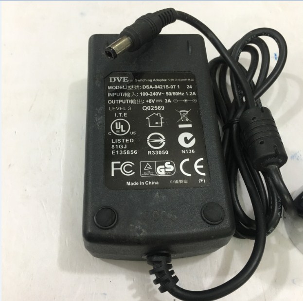 Adapter Original 8V 3A 24W DVE Connector Size 5.5mm x 2.5mm For MÁY XN NƯỚC TIỂU Urilyzer 500 Pro, 100 PRO URINE ANALYZER