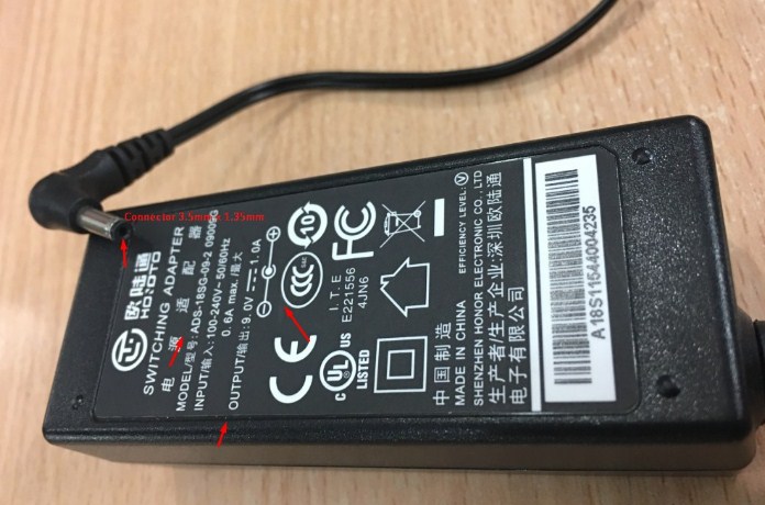 Part Description ADS-18SG-09-2 9V 1A, connector 3.5mm x 1.35mm, 2-Prong