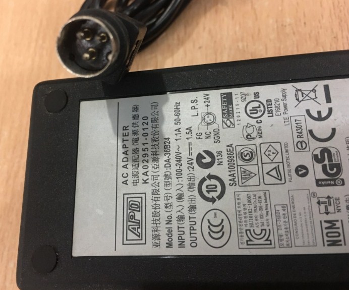 Adapter Original APD DA-36B24 24V 1.5A For POS mobile printers Connector: 3Pin 10mm Mini din