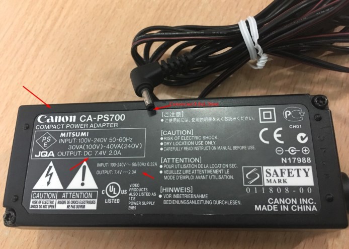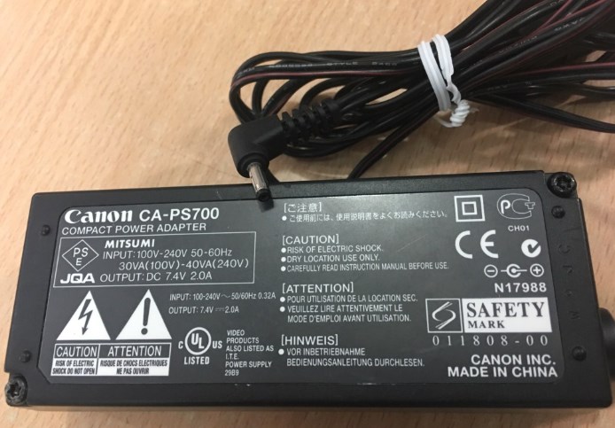 Adapter Original Canon CA-PS700 7.4V 2A For máy ảnh Canon EOS Digital Rebel EOS 550D 600D 700D Connector Size 3.0mm x 1.0mm