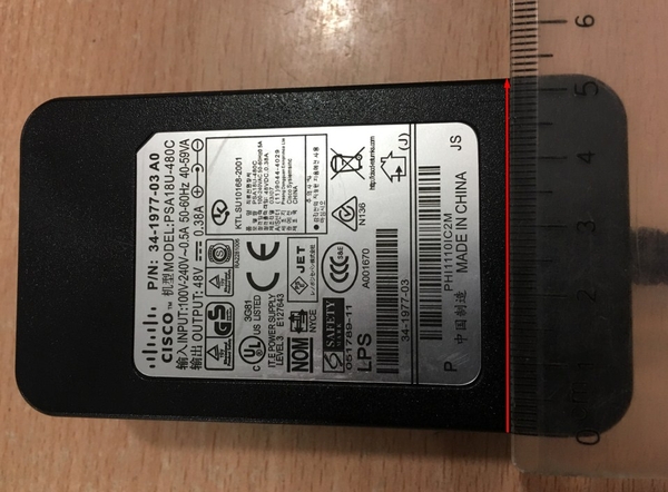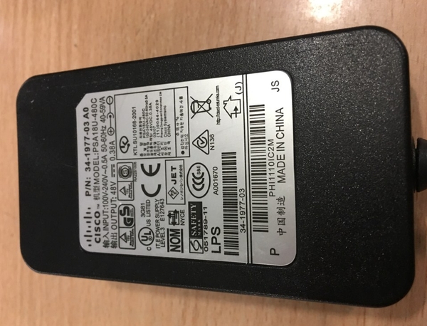 Adapter Original Cisco 48V 0.38A PSA18U-480C 34-1977-03 For Cisco Aironet Wireless Access Point 1041 1042 1130 1131 1141 1142 1242 1260 1310 3501 3502 3602 3602I Connector Size 5.5mm x 2.5mm