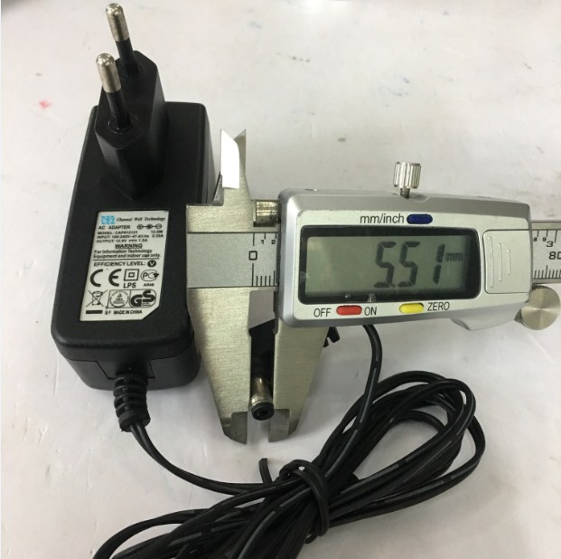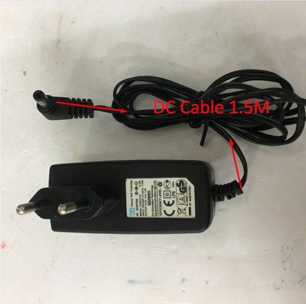 Nguồn điện cấp cho thiết bị: DC Size 5.5mm x 2.5mm cáp dài 1.5M đầu cắm chữ L 90 độ