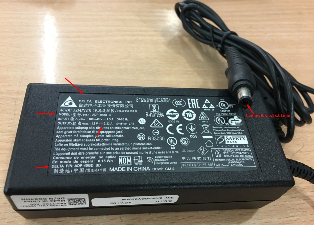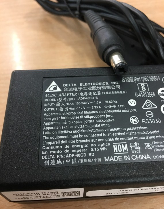 Adapter Original Delta Electronics ADP-40DD B 12V 3.33A 40W IEC C14 Connector Size 5.5mm x 2.1mm