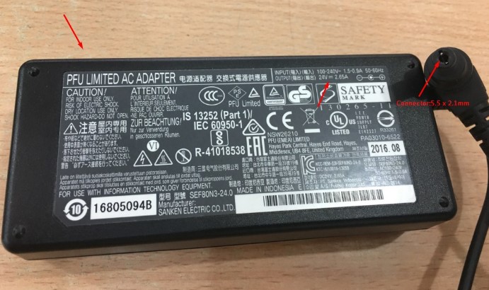 Adapter Original Fujitsu Scanner Fi-7160 Fi-6140 24V 2.65A IEC C5 Connector Size 5.5mm x 2.1mm