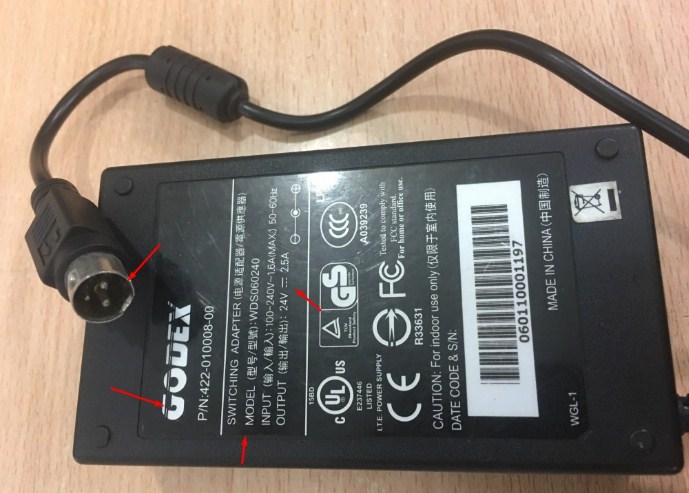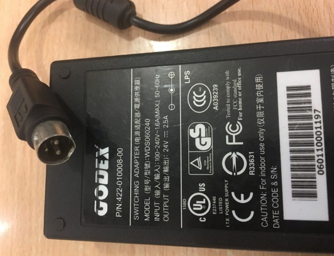 Adapter GODEX 215-300028-002, WDS060240 24V 2.5A dùng cho máy in hóa đơn mã vạch quản lý sản phẩm và giá thành sản phẩm.
