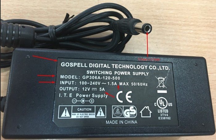 Item Name: Gospell GP306A-120-500 12V 5A 60W Connector:5.5x2.5mm2