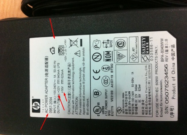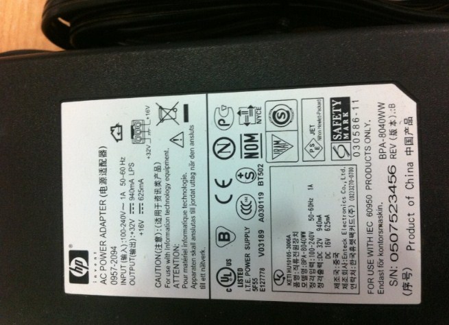 Adapter chuyển nguồn điện dùng cho máy in HP, MODEL: 0957-2094, Input Voltage: 100V-240VAC (50-60Hz), Output Voltage: 32V 940mA Max / 16V 625mA Max