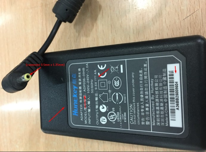 Adapter Original Huntkey ADP036-094B 9.5V 4A For POS PS400 IPS420 Connector Size 3.5mm x 1.35mm
