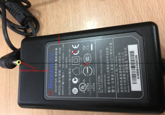 Nguồn điện cấp cho thiết bị: DC Connector Size 3.5mm x 1.35mm