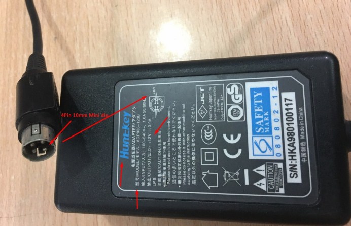 Adapter Original Huntkey ADP036-123B 12V 3A For POS Connector Size 4Pin 10mm Mini Din