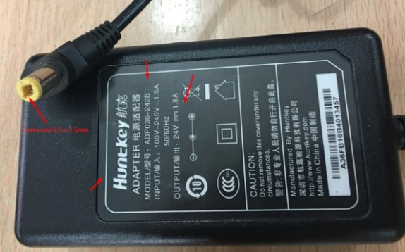 Nguồn điện cấp cho thiết bị: DC Connector Size 5.5mm x 2.5mm