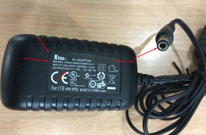 Adapter Original Ktec KSAC0600150W1UV 6V 1.5A For VoIP phones Connector Size 5.5mm x 2.5mm