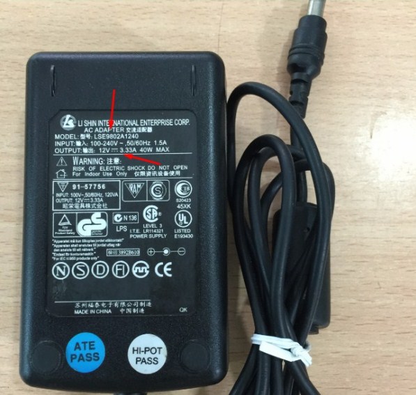 Adapter Original LI-SHIN-LSE9802A1240 12V 3.33A 40W Connector Size 5.5mm x 2.1mm