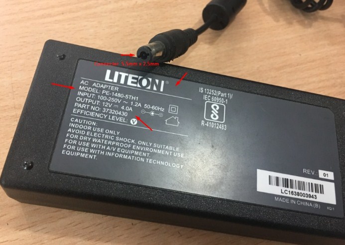 Adapter 12V 4A 48W LITEON PE-1480-5TH1 Connector Size 5.5mm x 2.5mm