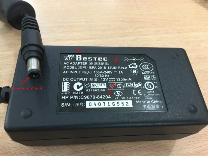 Adapter Original Netzteil Bestec BPA-201S-12UNI 12V-1250mA(Connector:5.5x2.1mm)