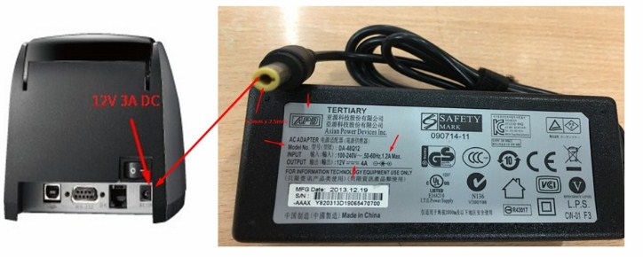 Thiết bị trên có thể dùng cho nhiều dòng máy in POS sử dụng điện áp DC 12V 3A 4A