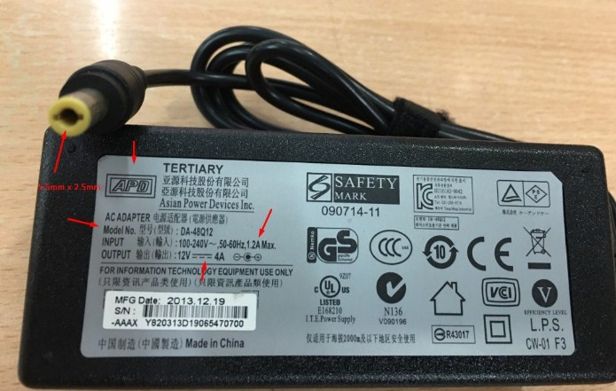 Adapter Original POS Printer Appostar RTP-2262 APD DA-48Q12 12V 4A(Connect Size: 5.5mm x 2.5mm)