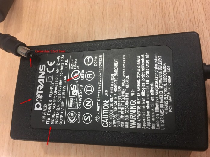 Adapter 12V 4A 48W Potrans UP04831120 Connector Size 5.5mm x 2.5mm