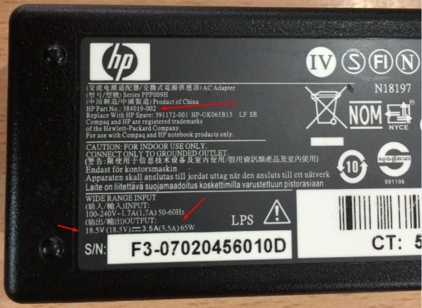 Output: DC18.5V 3.5A Power: 65W Max