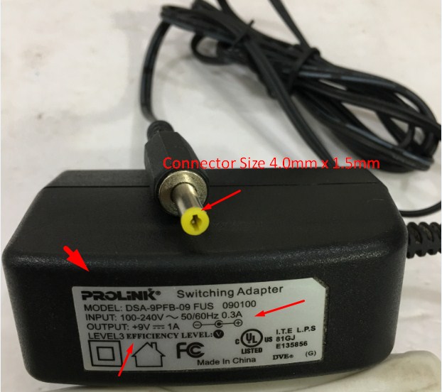 Adapter Original PROLiNK 9V 1A 9WDSA-9PFB-09 For Đồng Hồ Đo Kiểm Tra Trở Kháng Hioki 3540 MΩ Hitester Connector Size 5.5mm x 2.1mm