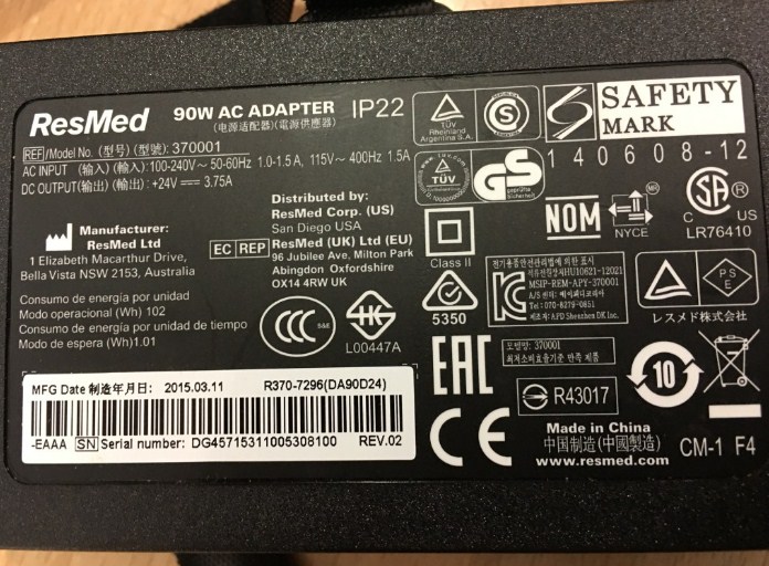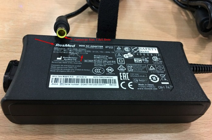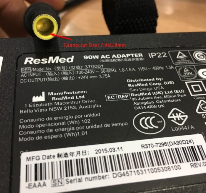 Adapter Original ResMed 370001 24V 3.75A 90W For Máy Tạo Độ Âm Tổng Hợp Khi Ngủ Thở CPAP Mới Nhất Của Hãng RESMED CPAP AIRSENSE 10RESMED AIR CURVE S10RESMED AIR SENSE S10RESMED AIRSENCE S10 Connector Size 7.4mm x 5.0mm