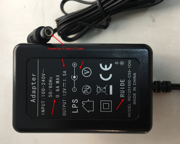 Nguồn điện cấp cho thiết bị: DC Connector Size 2.5mm x 2.1mm
