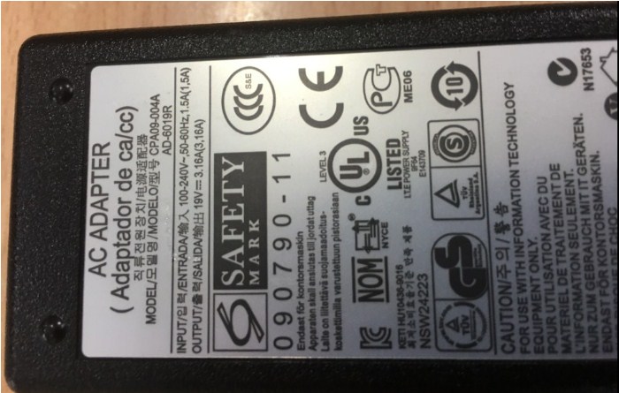Original Samsung Charger for CPA09-004A AD-6019R NP-R519 R60 RV510 R530 Q70 R20 R25 R40 Laptop AC ADAPTER POWER CHARGER