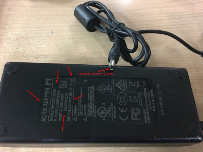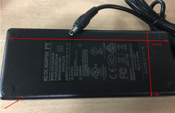 Nguồn điện cấp cho thiết bị: DC Connector Size 5.5mm x 2.5mm