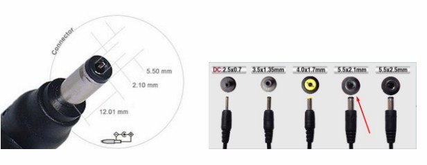 Out put adaptor jack size : 5.5mm x 2.1mm