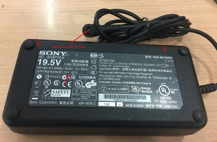Adapter Original Sony Vaio 19.5V 7.7A 150W For TV Sony Pro Smart WiFi 3D LED KDL50W790B 50IN Connector: 6.5 x 4.4mm