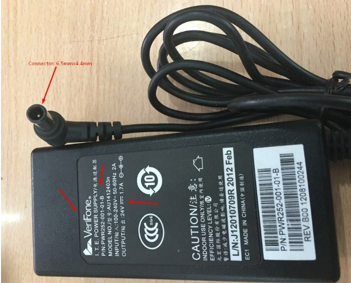 Adapter Original VeriFone Power Supply PWR268-001-01-B 24V 1.7A Connector Size 6.5mm x 4.4mm