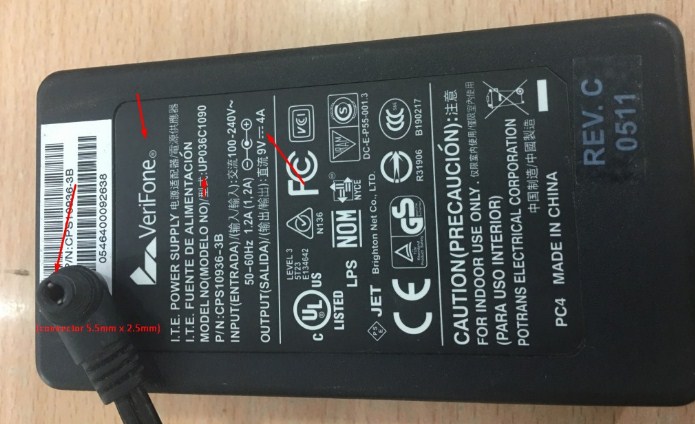 Adapter Original VeriFone UP036C1090 9V 4A 36W 100 -240V For Omni 3730LE Vx 510 Printer AMT & Gprinter Bo GP-58MB Connector Size 5.5mm x 2.5mm