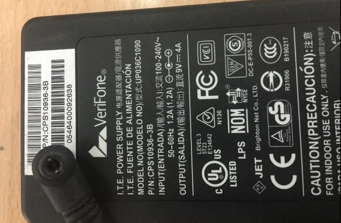 Adapter Original VeriFone UP036C1090 9V 4A 36W 100 -240V for Omni 3730LE Vx 510 Printer AMT & Gprinter Bo GP-58MB(connector 5.5mm x 2.5mm)
