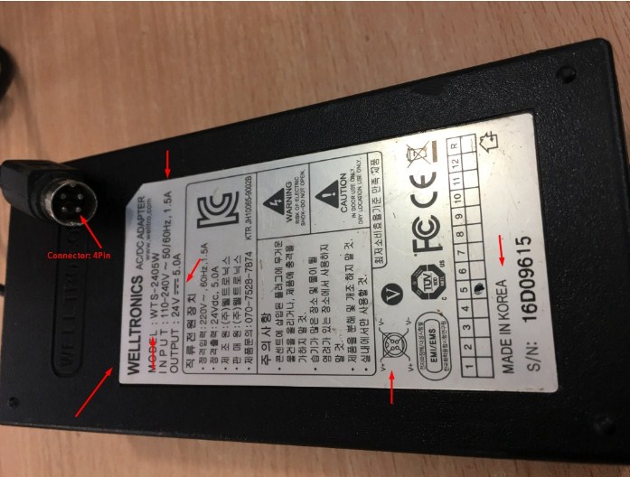 Adapter Original WELLTRONICS 24V 5A WTS-2405W Korean 120W IEC C14 For IPS LED Monitor 2560x1440 Monitor Switching Connector: 4Pin
