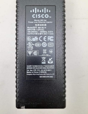Và sạc đi theo thiết bị của Cisco Meraki MA-INJ-4-US MR 802.3at PoE Injector by Cisco Meraki