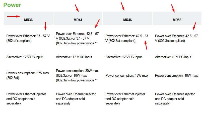 Căn cứ vào Power Supply trên Cisco Meraki MR44-HW Router Datasheet